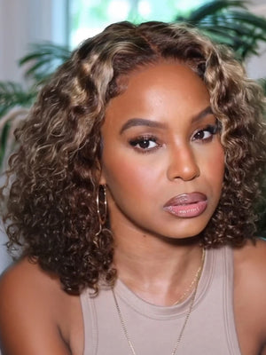 Beme Glueless ReadyWear 13x4 Blonde Highlight Jerry Curly BOB Wig 100% Human Hair