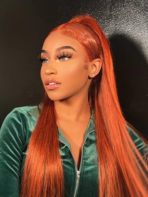 Beme Glueless ReadyWear 13x4 Ginger Straight Wig 100% Human Hair