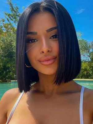 Beme Glueless ReadyWear 13x4 Natural Black Straight BOB Wig 100% Human Hair