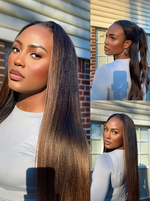 Beme Glueless ReadyWear 13x4 Natural Black Yaki Straight Wig 100% Human Hair